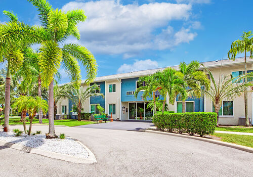 Our Palm floor plan features a spacious bedroom with en suite and walk-in closet, open living space, and a patio or balcony.